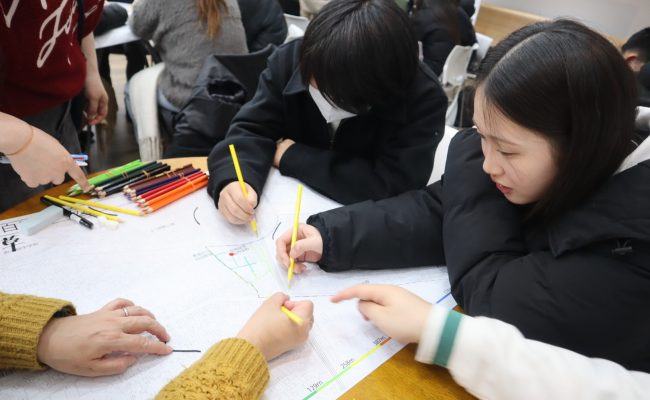②外部の大学生やサポートスタッフの方々から学ぶ機会を得られたことは貴重であり、具体的な説明によって災害時の状況をより現実的に想像しながら取り組むことができた。建物の高さや構造による倒壊の違いを知り、周辺環境を立体的に捉える必要性を感じた。色分けによる可視化によって複数の避難経路があることにも気づき、日頃から代替ルートを把握しておく重要性を実感した。一方で、距離の短さだけでなく、安全性を重視した判断が必要であることを学び、保育現場における避難行動の在り方についても考える契機となった。